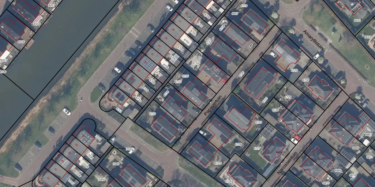 Gebruik de zoekbalk of klik op een perceel voor informatie over de adressen binnen dit perceel.