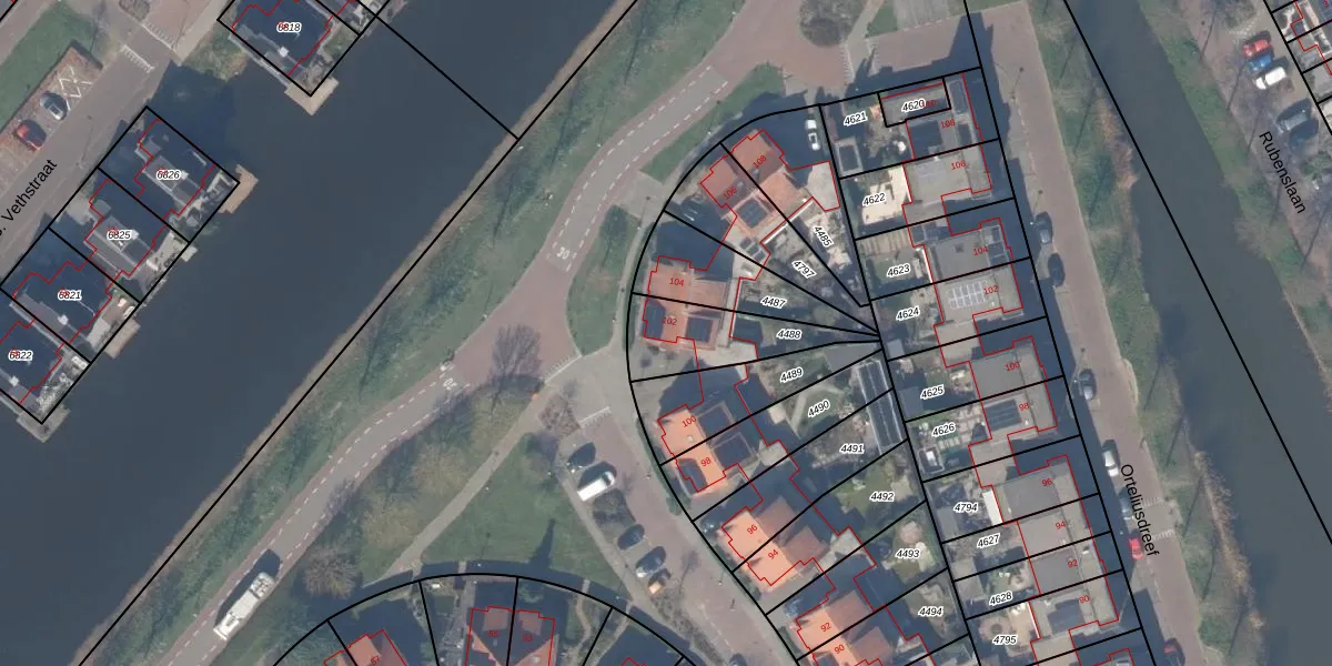 Gebruik de zoekbalk of klik op een perceel voor informatie over de adressen binnen dit perceel.