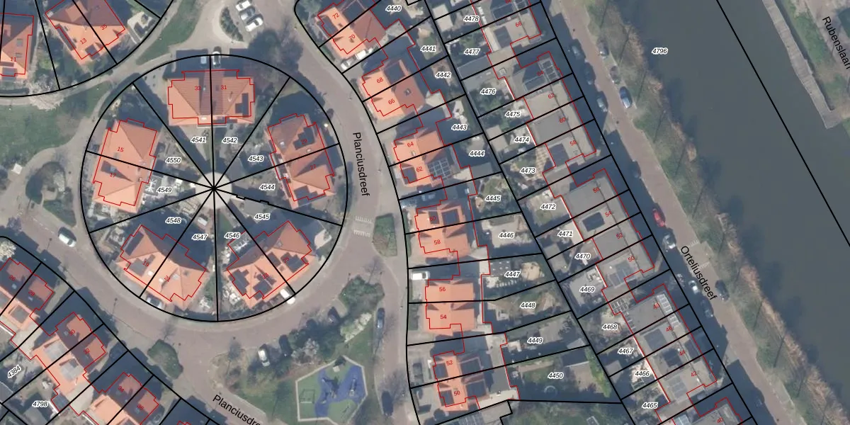 Gebruik de zoekbalk of klik op een perceel voor informatie over de adressen binnen dit perceel.