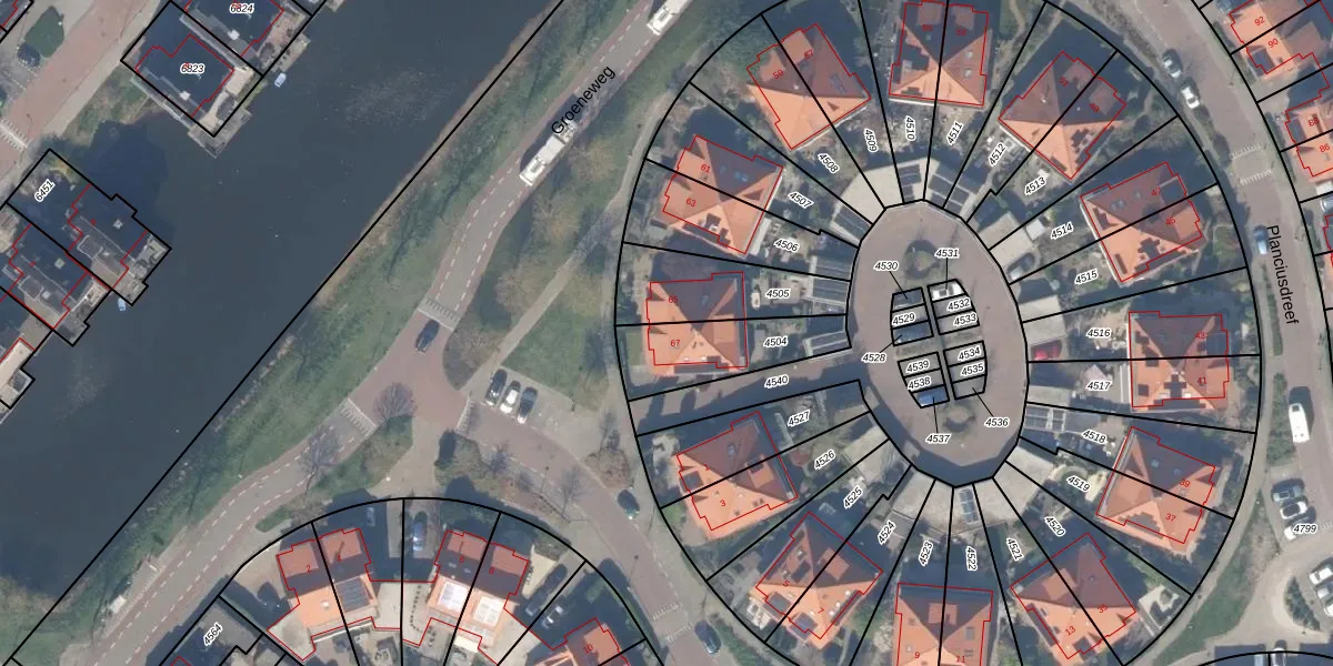 Gebruik de zoekbalk of klik op een perceel voor informatie over de adressen binnen dit perceel.