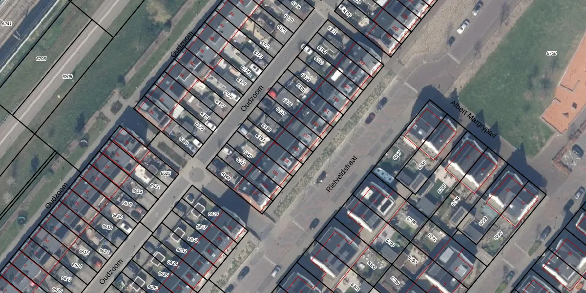 Rietveldstraat 135 is gelegen op kadastraal perceel BSH00A6338. Deze kadastrale aanduiding is uniek en wordt gebruikt door het Kadaster om eigendomsrechten en andere zakelijke rechten vast te leggen. Het perceel maakt onderdeel uit van de kadastrale gemeente Bergschenhoek.