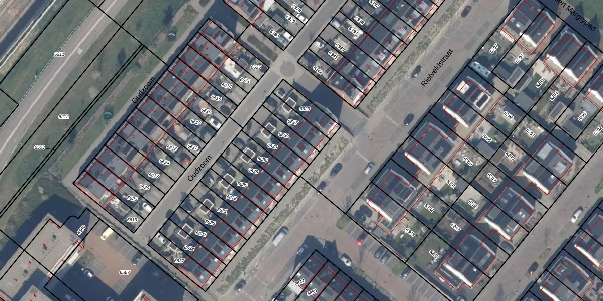 Rietveldstraat 33 is gelegen op kadastraal perceel BSH00A6639. Deze kadastrale aanduiding is uniek en wordt gebruikt door het Kadaster om eigendomsrechten en andere zakelijke rechten vast te leggen. Het perceel maakt onderdeel uit van de kadastrale gemeente Bergschenhoek.