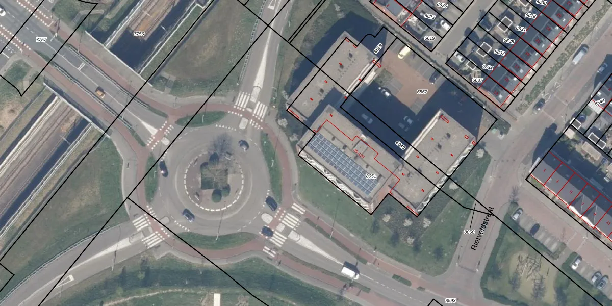 Het perceel waarop Rietveldstraat 77 staat heeft een oppervlakte van 995 m². Dit is een groot perceel. De perceeloppervlakte wordt geregistreerd door het Kadaster. Gedetailleerde informatie over de maten van dit perceel kunt u vinden in het rapport Kadastrale kaart met maatvoering van Rietveldstraat 77.