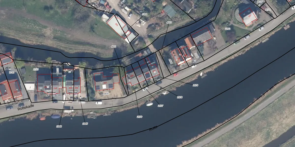 Het perceel waarop Rottekade 203 staat heeft een oppervlakte van 94 m². Dit is een klein perceel. De perceeloppervlakte wordt geregistreerd door het Kadaster. Gedetailleerde informatie over de maten van dit perceel kunt u vinden in het rapport Kadastrale kaart met maatvoering van Rottekade 203.