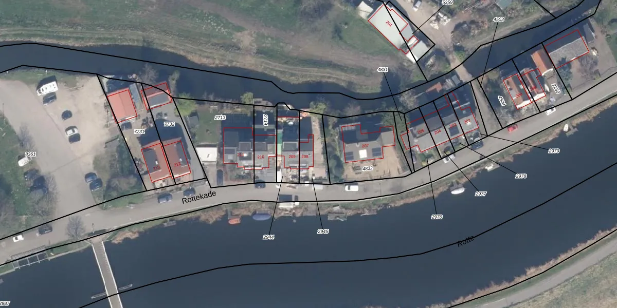 Het perceel waarop Rottekade 208 staat heeft een oppervlakte van 197 m². Dit is een middelgroot perceel. De perceeloppervlakte wordt geregistreerd door het Kadaster. Gedetailleerde informatie over de maten van dit perceel kunt u vinden in het rapport Kadastrale kaart met maatvoering van Rottekade 208.