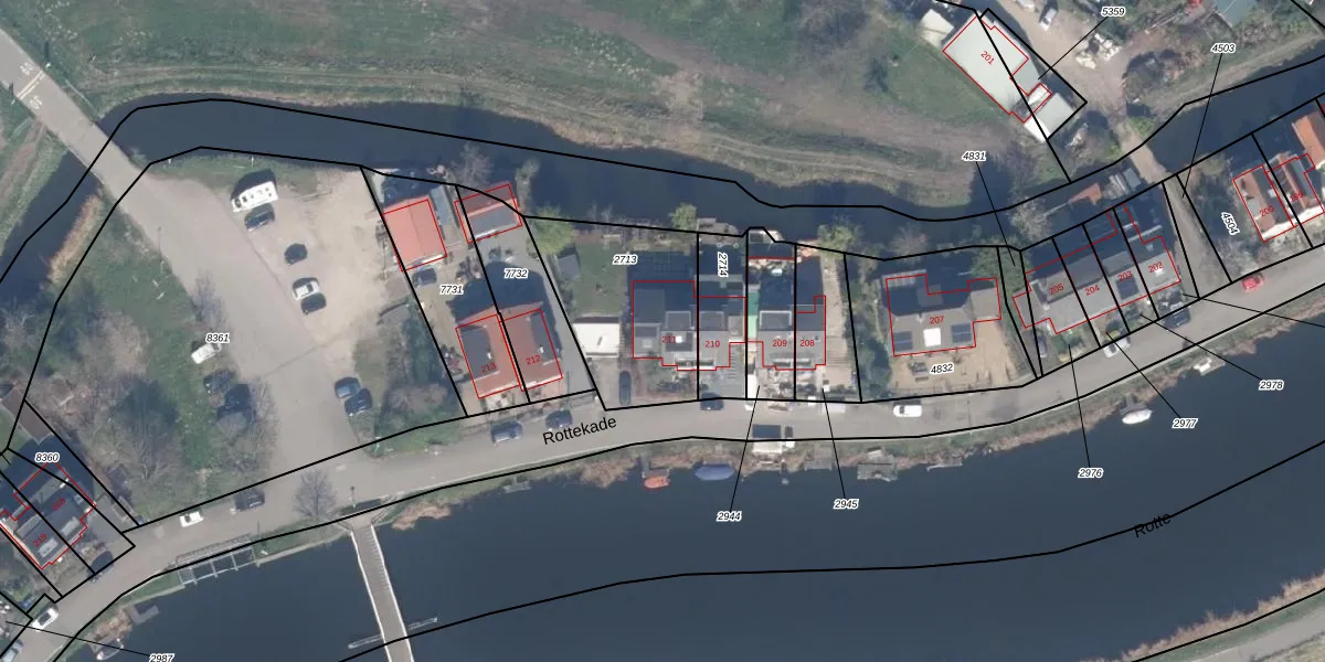 Het perceel waarop Rottekade 211 staat heeft een oppervlakte van 549 m². Dit is een groot perceel. De perceeloppervlakte wordt geregistreerd door het Kadaster. Gedetailleerde informatie over de maten van dit perceel kunt u vinden in het rapport Kadastrale kaart met maatvoering van Rottekade 211.