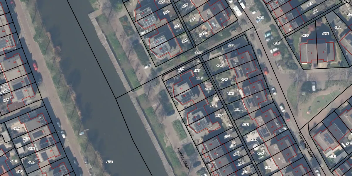 Rubenslaan 53 is gelegen op kadastraal perceel BSH00A4786. Deze kadastrale aanduiding is uniek en wordt gebruikt door het Kadaster om eigendomsrechten en andere zakelijke rechten vast te leggen. Het perceel maakt onderdeel uit van de kadastrale gemeente Bergschenhoek.