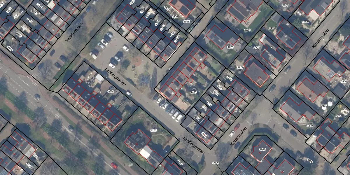 Het perceel waarop Stellingmolen 4 staat heeft een oppervlakte van 847 m². Dit is een groot perceel. De perceeloppervlakte wordt geregistreerd door het Kadaster. Gedetailleerde informatie over de maten van dit perceel kunt u vinden in het rapport Kadastrale kaart met maatvoering van Stellingmolen 4.