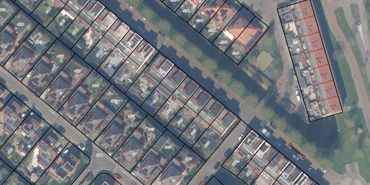 Het perceel waarop Stevinweg 18 staat heeft een oppervlakte van 262 m². Dit is een middelgroot perceel. De perceeloppervlakte wordt geregistreerd door het Kadaster. Gedetailleerde informatie over de maten van dit perceel kunt u vinden in het rapport Kadastrale kaart met maatvoering van Stevinweg 18.