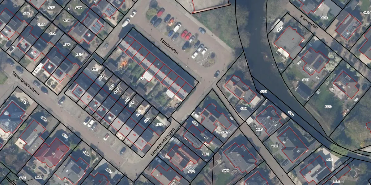 Het perceel waarop Struisvaren 41 staat heeft een oppervlakte van 1195 m². Dit is een zeer groot perceel. De perceeloppervlakte wordt geregistreerd door het Kadaster. Gedetailleerde informatie over de maten van dit perceel kunt u vinden in het rapport Kadastrale kaart met maatvoering van Struisvaren 41.