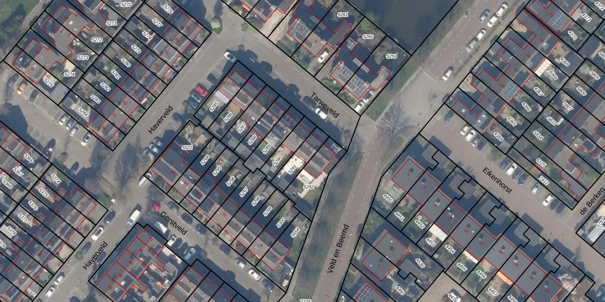 Gebruik de zoekbalk of klik op een perceel voor informatie over de adressen binnen dit perceel.