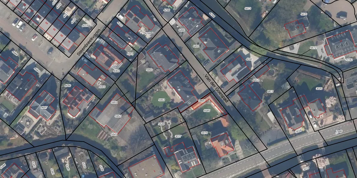 Gebruik de zoekbalk of klik op een perceel voor informatie over de adressen binnen dit perceel.
