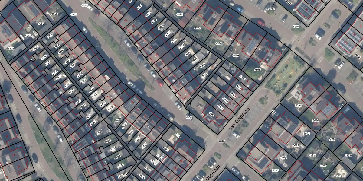 van Goghlaan 43 is gelegen op kadastraal perceel BSH00A4861. Deze kadastrale aanduiding is uniek en wordt gebruikt door het Kadaster om eigendomsrechten en andere zakelijke rechten vast te leggen. Het perceel maakt onderdeel uit van de kadastrale gemeente Bergschenhoek.