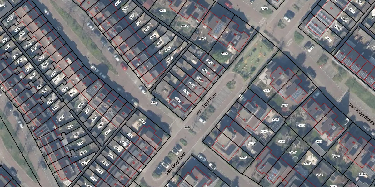 Het perceel waarop van Goghlaan 49 staat heeft een oppervlakte van 117 m². Dit is een middelgroot perceel. De perceeloppervlakte wordt geregistreerd door het Kadaster. Gedetailleerde informatie over de maten van dit perceel kunt u vinden in het rapport Kadastrale kaart met maatvoering van van Goghlaan 49.