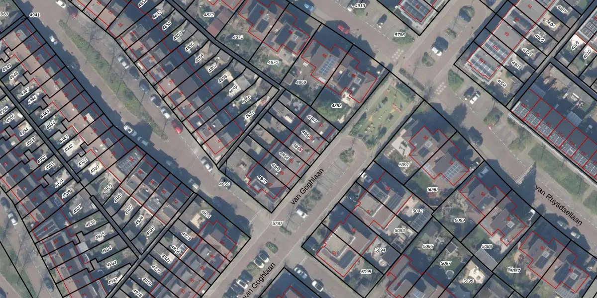 van Goghlaan 53 is gelegen op kadastraal perceel BSH00A4865. Deze kadastrale aanduiding is uniek en wordt gebruikt door het Kadaster om eigendomsrechten en andere zakelijke rechten vast te leggen. Het perceel maakt onderdeel uit van de kadastrale gemeente Bergschenhoek.