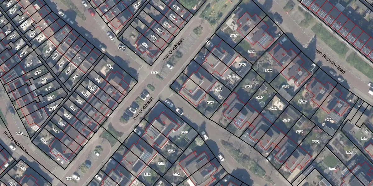 van Goghlaan 65 is gelegen op kadastraal perceel BSH00A5095. Deze kadastrale aanduiding is uniek en wordt gebruikt door het Kadaster om eigendomsrechten en andere zakelijke rechten vast te leggen. Het perceel maakt onderdeel uit van de kadastrale gemeente Bergschenhoek.