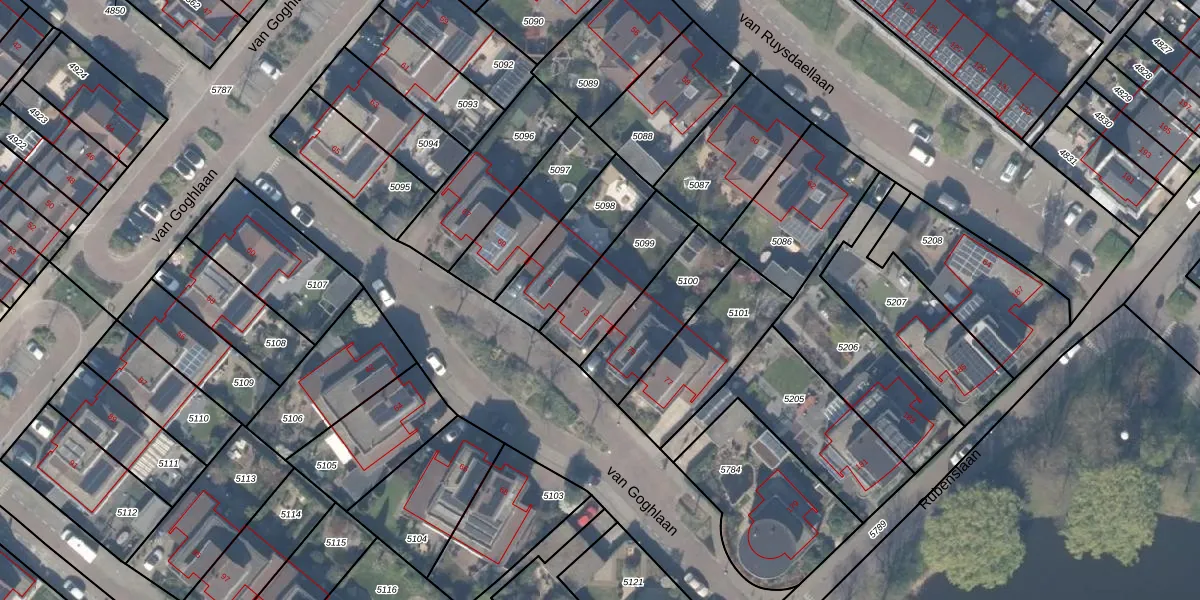 Het perceel waarop van Goghlaan 73 staat heeft een oppervlakte van 277 m². Dit is een middelgroot perceel. De perceeloppervlakte wordt geregistreerd door het Kadaster. Gedetailleerde informatie over de maten van dit perceel kunt u vinden in het rapport Kadastrale kaart met maatvoering van van Goghlaan 73.