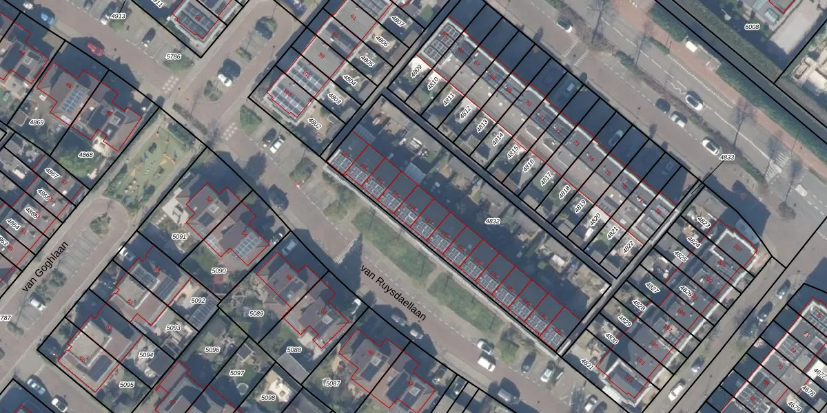 van Ruysdaellaan 115 is gelegen op kadastraal perceel BSH00A4832. Deze kadastrale aanduiding is uniek en wordt gebruikt door het Kadaster om eigendomsrechten en andere zakelijke rechten vast te leggen. Het perceel maakt onderdeel uit van de kadastrale gemeente Bergschenhoek.