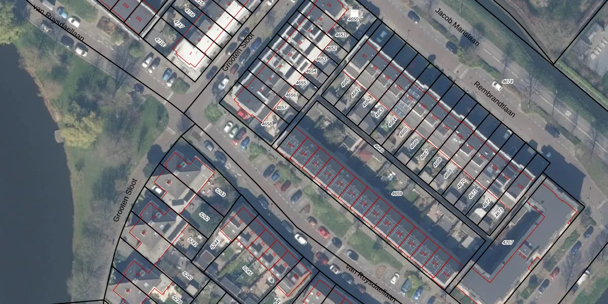 Het perceel waarop van Ruysdaellaan 169 staat heeft een oppervlakte van 1538 m². Dit is een zeer groot perceel. De perceeloppervlakte wordt geregistreerd door het Kadaster. Gedetailleerde informatie over de maten van dit perceel kunt u vinden in het rapport Kadastrale kaart met maatvoering van van Ruysdaellaan 169.