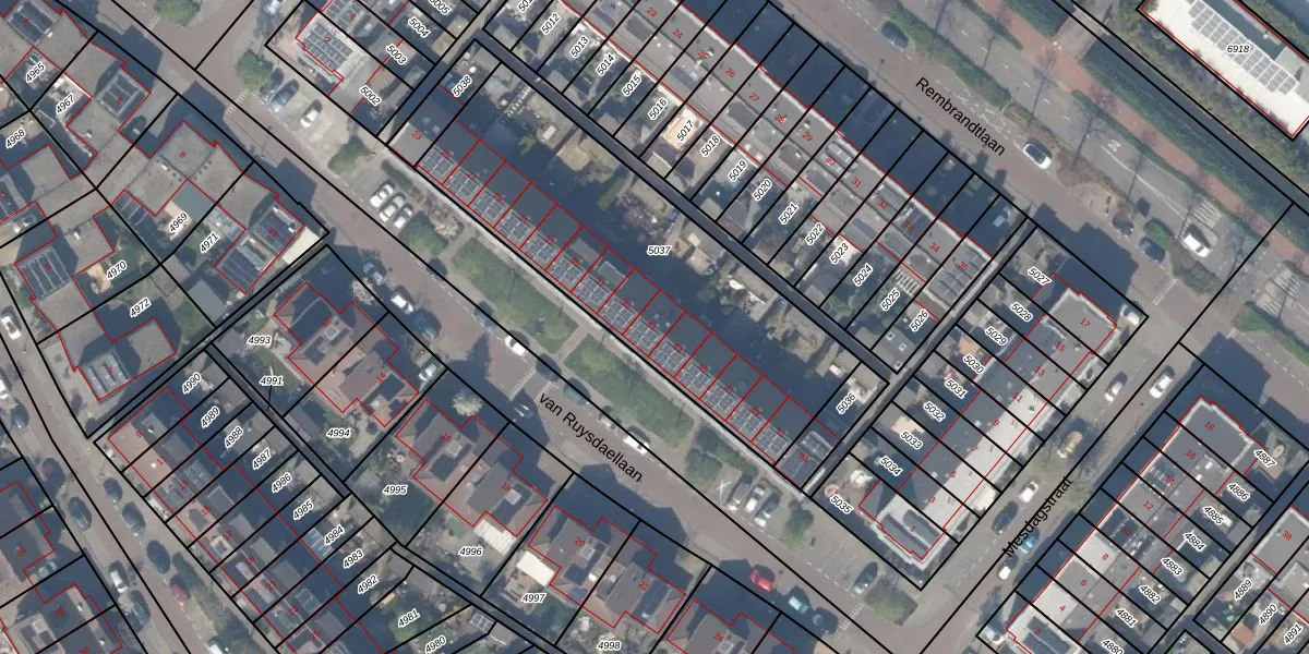 van Ruysdaellaan 41 is gelegen op kadastraal perceel BSH00A5037. Deze kadastrale aanduiding is uniek en wordt gebruikt door het Kadaster om eigendomsrechten en andere zakelijke rechten vast te leggen. Het perceel maakt onderdeel uit van de kadastrale gemeente Bergschenhoek.