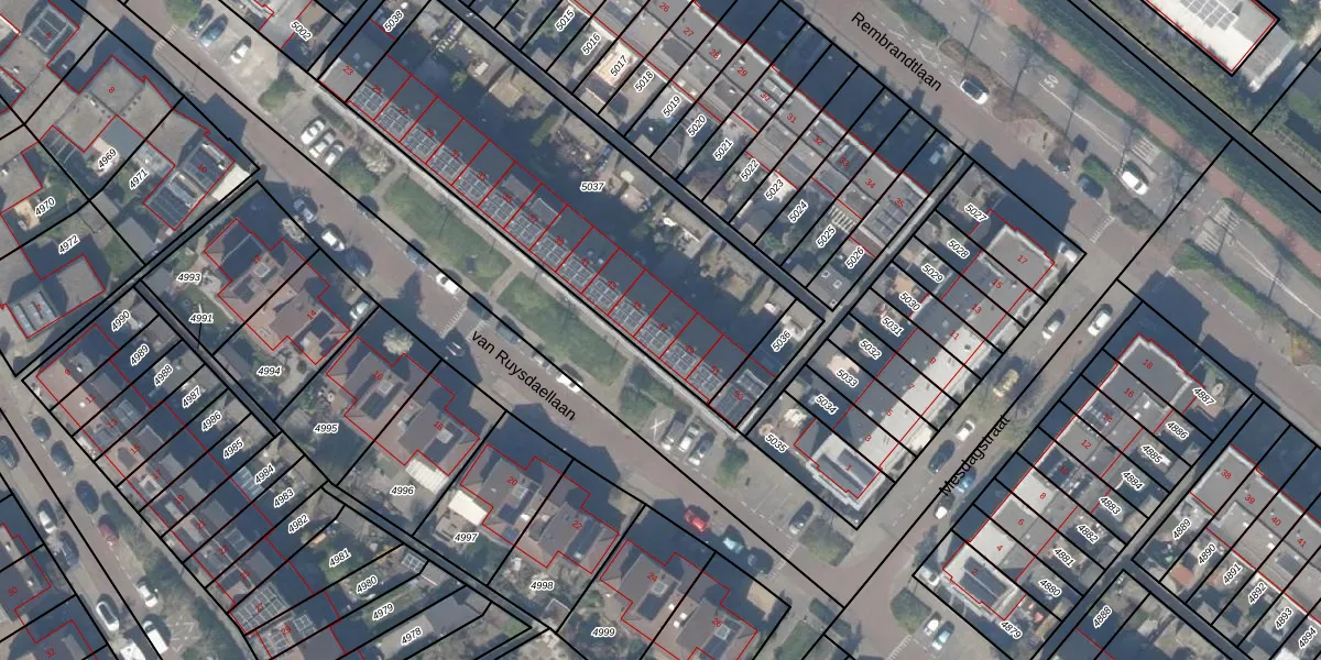 van Ruysdaellaan 47 is gelegen op kadastraal perceel BSH00A5037. Deze kadastrale aanduiding is uniek en wordt gebruikt door het Kadaster om eigendomsrechten en andere zakelijke rechten vast te leggen. Het perceel maakt onderdeel uit van de kadastrale gemeente Bergschenhoek.