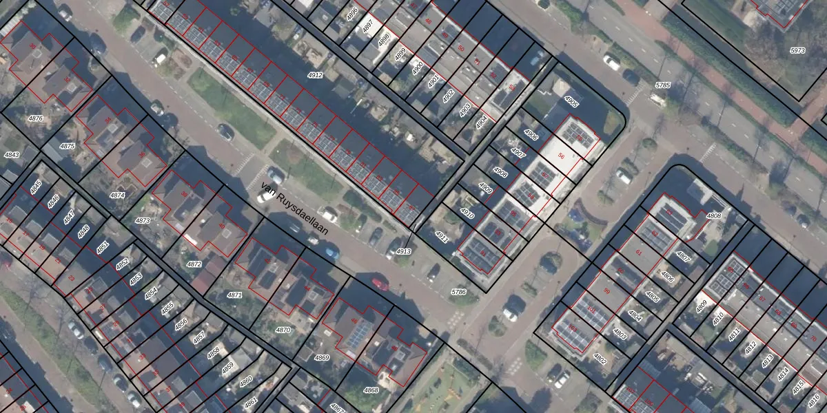 van Ruysdaellaan 87 is gelegen op kadastraal perceel BSH00A4912. Deze kadastrale aanduiding is uniek en wordt gebruikt door het Kadaster om eigendomsrechten en andere zakelijke rechten vast te leggen. Het perceel maakt onderdeel uit van de kadastrale gemeente Bergschenhoek.