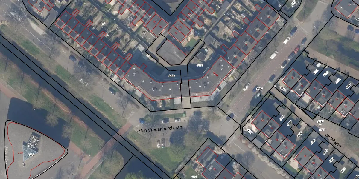 Het perceel waarop Van Vredenburchlaan 32 staat heeft een oppervlakte van 6260 m². Dit is een zeer groot perceel. De perceeloppervlakte wordt geregistreerd door het Kadaster. Gedetailleerde informatie over de maten van dit perceel kunt u vinden in het rapport Kadastrale kaart met maatvoering van Van Vredenburchlaan 32.