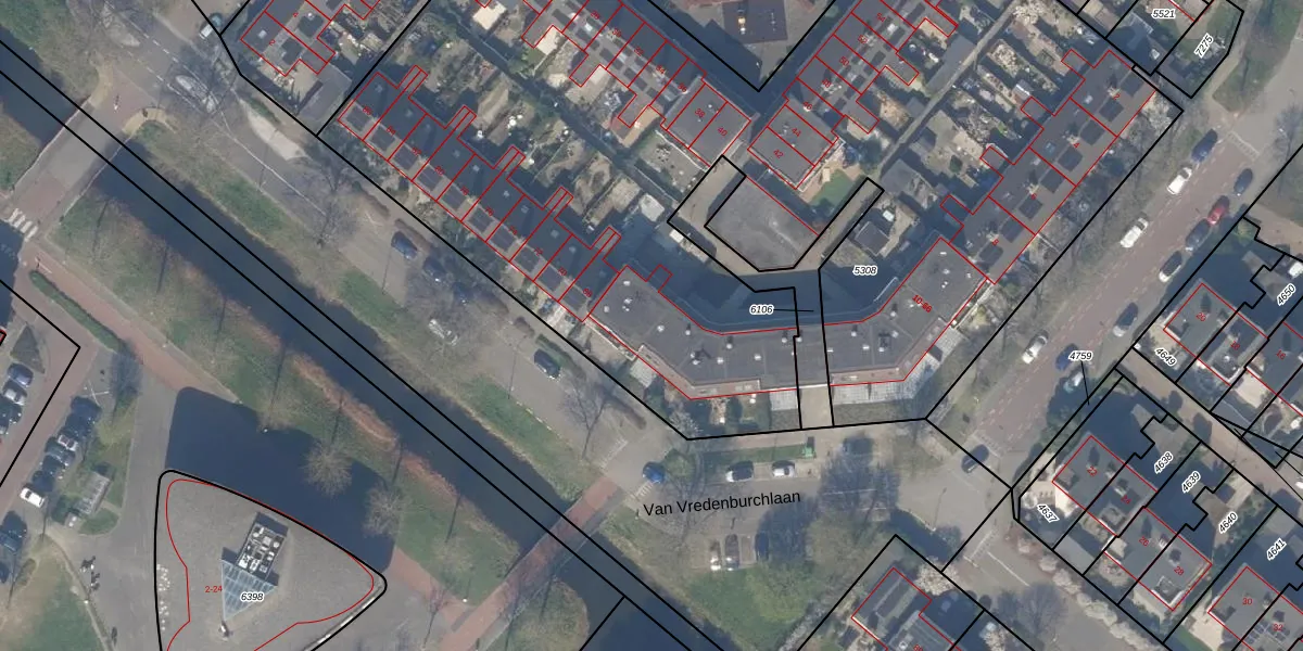 Het perceel waarop Van Vredenburchlaan 54 staat heeft een oppervlakte van 6260 m². Dit is een zeer groot perceel. De perceeloppervlakte wordt geregistreerd door het Kadaster. Gedetailleerde informatie over de maten van dit perceel kunt u vinden in het rapport Kadastrale kaart met maatvoering van Van Vredenburchlaan 54.