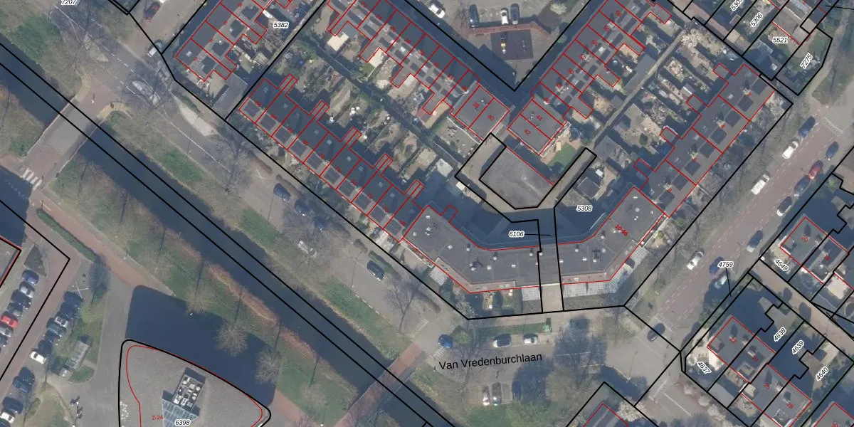 Het perceel waarop Van Vredenburchlaan 62 staat heeft een oppervlakte van 6260 m². Dit is een zeer groot perceel. De perceeloppervlakte wordt geregistreerd door het Kadaster. Gedetailleerde informatie over de maten van dit perceel kunt u vinden in het rapport Kadastrale kaart met maatvoering van Van Vredenburchlaan 62.