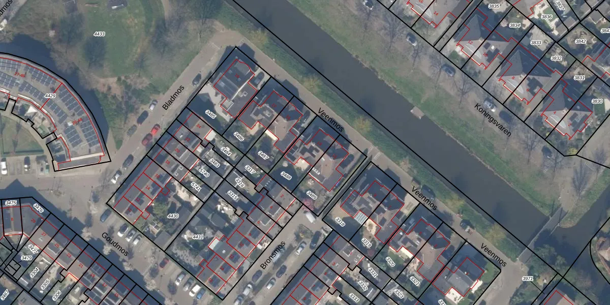 Het perceel waarop Veenmos 13 staat heeft een oppervlakte van 250 m². Dit is een middelgroot perceel. De perceeloppervlakte wordt geregistreerd door het Kadaster. Gedetailleerde informatie over de maten van dit perceel kunt u vinden in het rapport Kadastrale kaart met maatvoering van Veenmos 13.