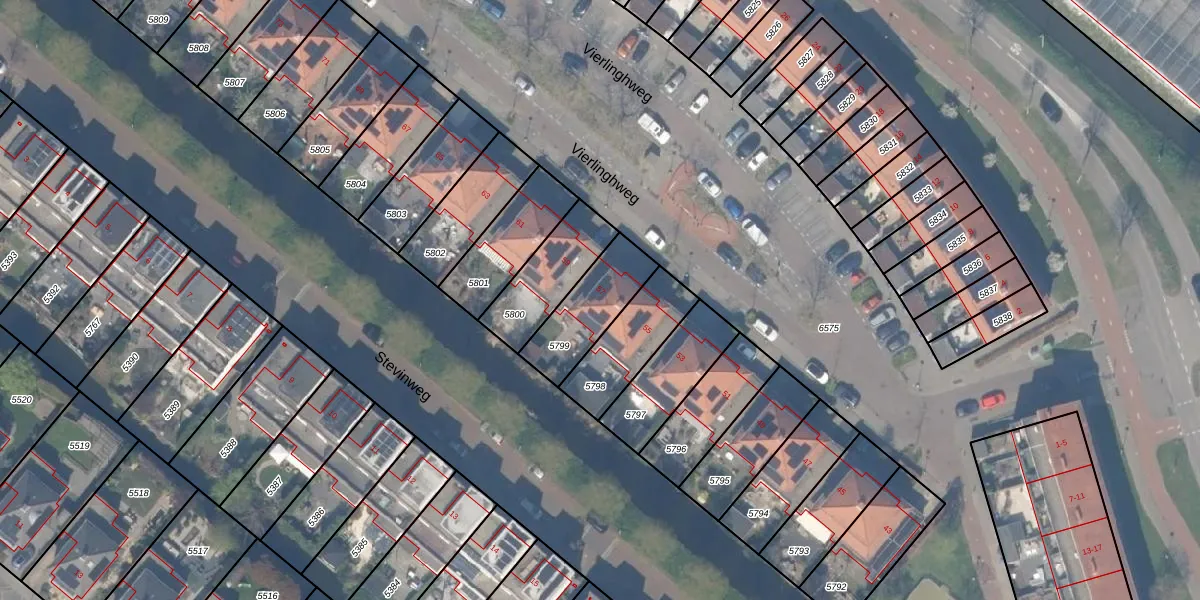 Vierlinghweg 57 is gelegen op kadastraal perceel BSH00A5799. Deze kadastrale aanduiding is uniek en wordt gebruikt door het Kadaster om eigendomsrechten en andere zakelijke rechten vast te leggen. Het perceel maakt onderdeel uit van de kadastrale gemeente Bergschenhoek.
