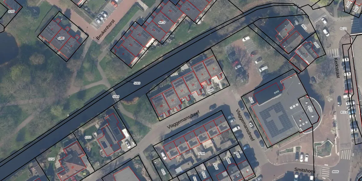 Vlaggemansdreef 12 is gelegen op kadastraal perceel BSH00B5091. Deze kadastrale aanduiding is uniek en wordt gebruikt door het Kadaster om eigendomsrechten en andere zakelijke rechten vast te leggen. Het perceel maakt onderdeel uit van de kadastrale gemeente Bergschenhoek.