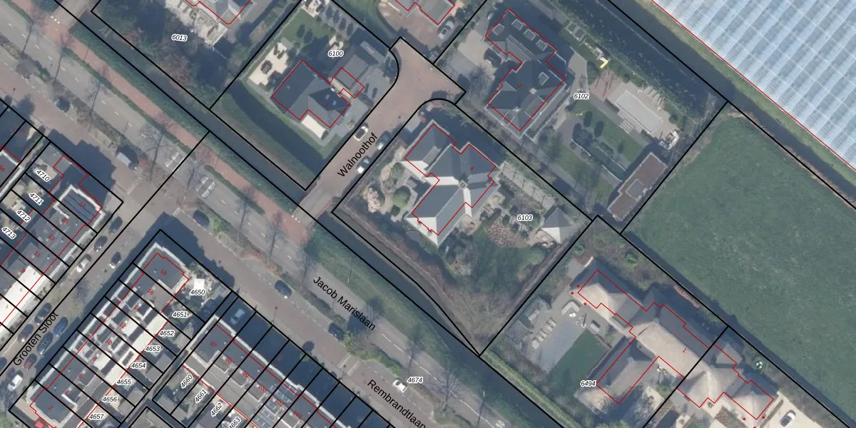 Het perceel waarop Walnoothof 4 staat heeft een oppervlakte van 1835 m². Dit is een zeer groot perceel. De perceeloppervlakte wordt geregistreerd door het Kadaster. Gedetailleerde informatie over de maten van dit perceel kunt u vinden in het rapport Kadastrale kaart met maatvoering van Walnoothof 4.