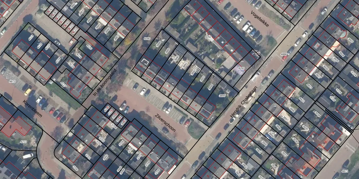Gebruik de zoekbalk of klik op een perceel voor informatie over de adressen binnen dit perceel.