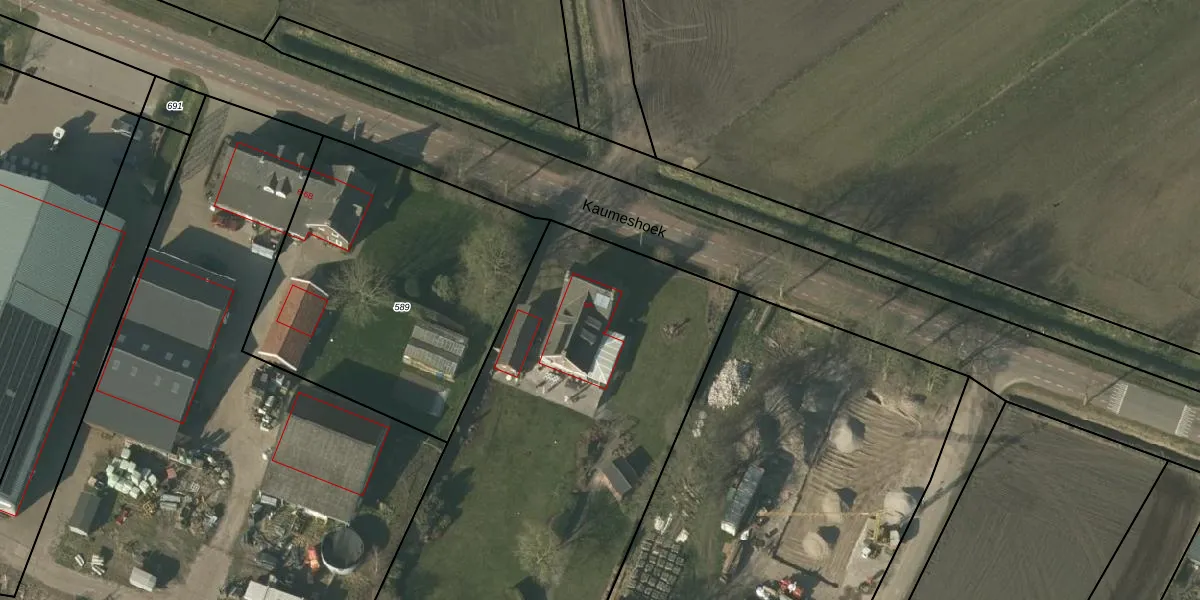 Het perceel waarop Kaumeshoek 5-A staat heeft een oppervlakte van 6271 m². Dit is een zeer groot perceel. De perceeloppervlakte wordt geregistreerd door het Kadaster. Gedetailleerde informatie over de maten van dit perceel kunt u vinden in het rapport Kadastrale kaart met maatvoering van Kaumeshoek 5-A.