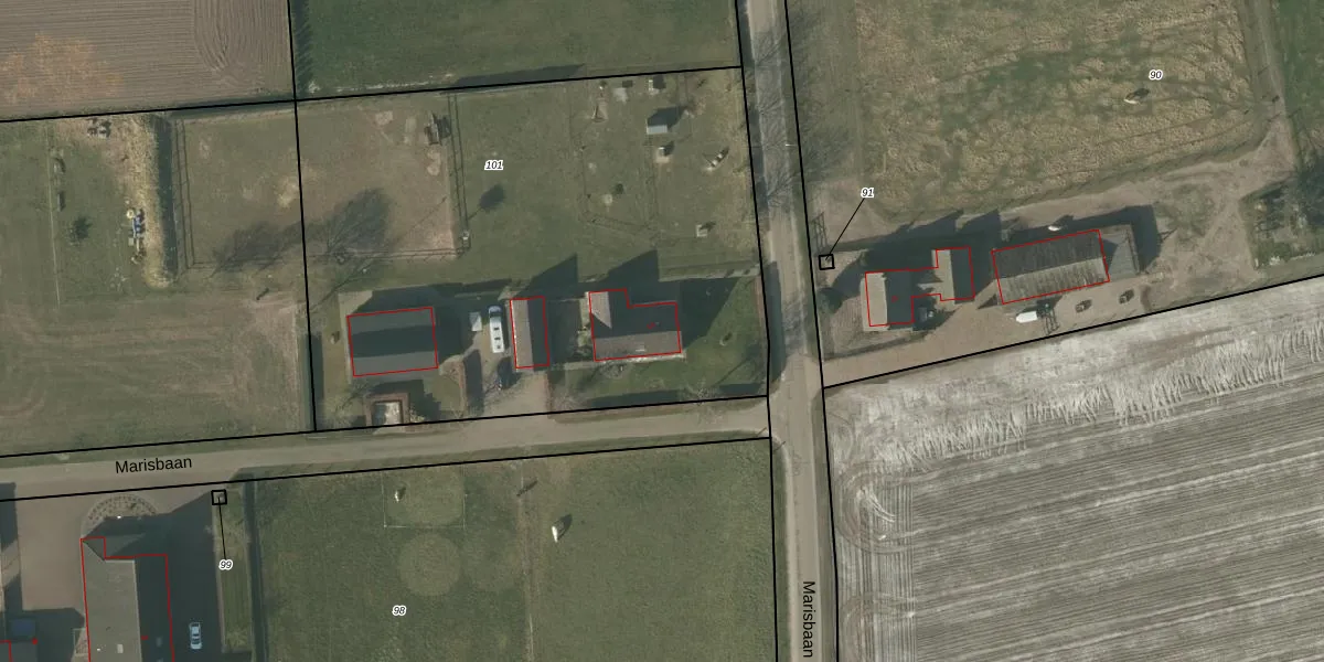 Het perceel waarop Marisbaan 5 staat heeft een oppervlakte van 3412 m². Dit is een zeer groot perceel. De perceeloppervlakte wordt geregistreerd door het Kadaster. Gedetailleerde informatie over de maten van dit perceel kunt u vinden in het rapport Kadastrale kaart met maatvoering van Marisbaan 5.