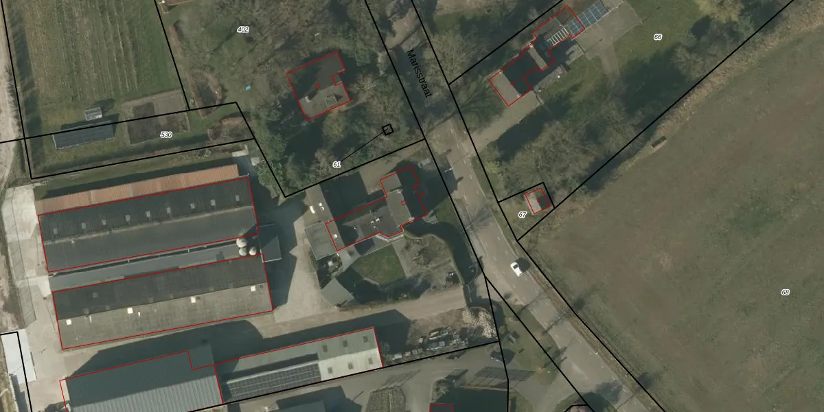 Het perceel waarop Marisstraat 11 staat heeft een oppervlakte van 1,3 ha. Dit is een zeer groot perceel. De perceeloppervlakte wordt geregistreerd door het Kadaster. Gedetailleerde informatie over de maten van dit perceel kunt u vinden in het rapport Kadastrale kaart met maatvoering van Marisstraat 11.