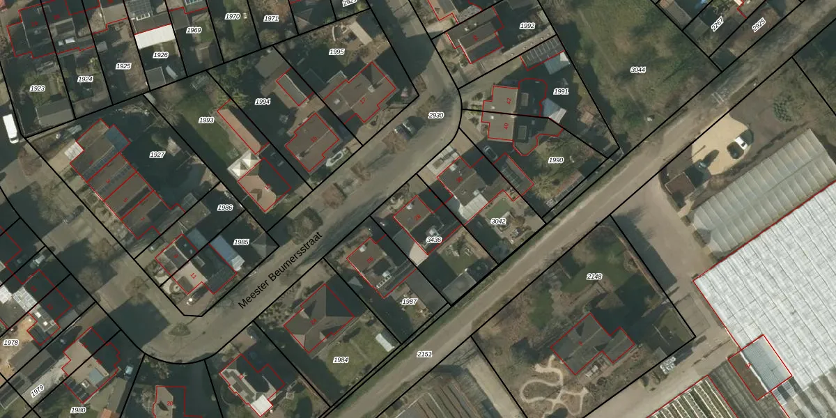 Het perceel waarop Meester Beumersstraat 28 staat heeft een oppervlakte van 439 m². Dit is een groot perceel. De perceeloppervlakte wordt geregistreerd door het Kadaster. Gedetailleerde informatie over de maten van dit perceel kunt u vinden in het rapport Kadastrale kaart met maatvoering van Meester Beumersstraat 28.