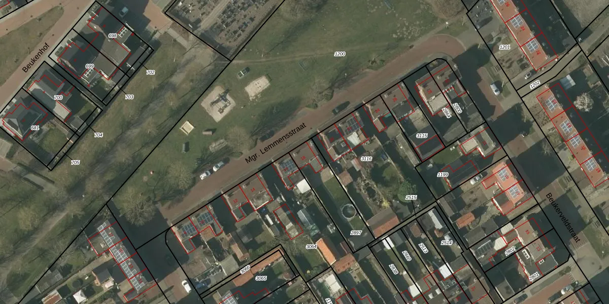 Het perceel waarop Mgr. Lemmensstraat 18 staat heeft een oppervlakte van 340 m². Dit is een groot perceel. De perceeloppervlakte wordt geregistreerd door het Kadaster. Gedetailleerde informatie over de maten van dit perceel kunt u vinden in het rapport Kadastrale kaart met maatvoering van Mgr. Lemmensstraat 18.