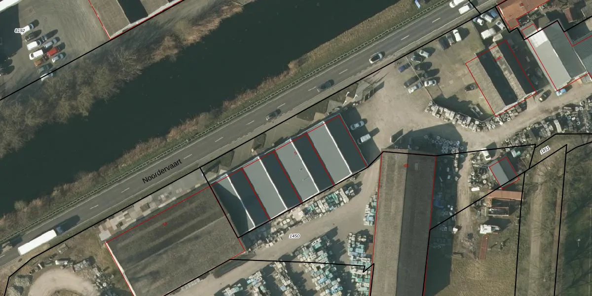 Het perceel waarop Noordervaart 5 staat heeft een oppervlakte van 9948 m². Dit is een zeer groot perceel. De perceeloppervlakte wordt geregistreerd door het Kadaster. Gedetailleerde informatie over de maten van dit perceel kunt u vinden in het rapport Kadastrale kaart met maatvoering van Noordervaart 5.