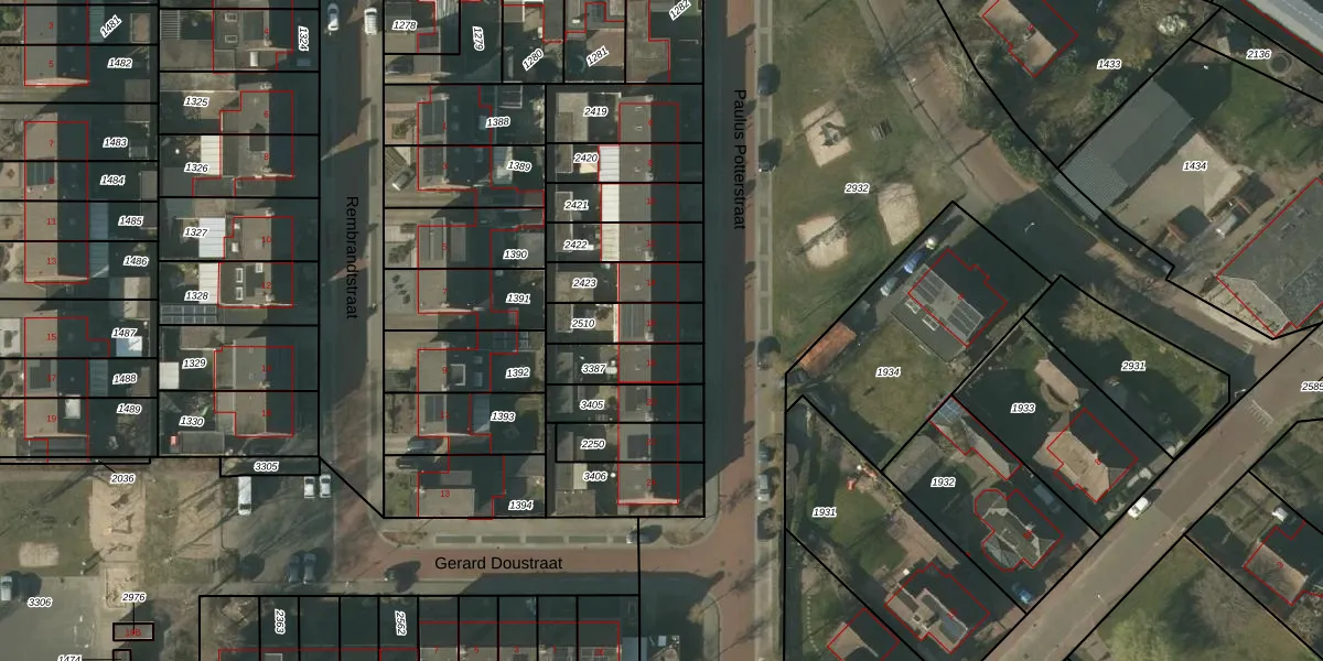 Paulus Potterstraat 16 is gelegen op kadastraal perceel HDN01H2510. Deze kadastrale aanduiding is uniek en wordt gebruikt door het Kadaster om eigendomsrechten en andere zakelijke rechten vast te leggen. Het perceel maakt onderdeel uit van de kadastrale gemeente Helden.