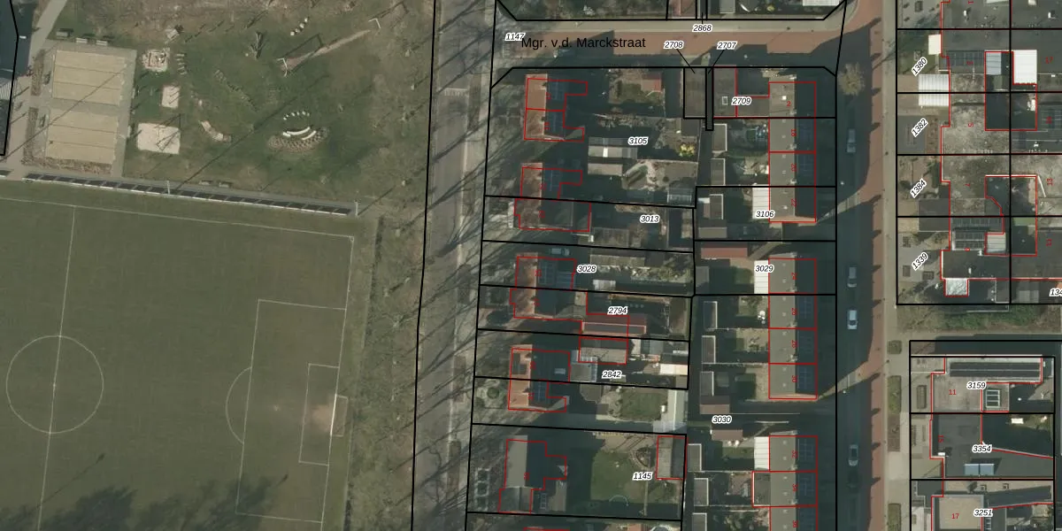 Gebruik de zoekbalk of klik op een perceel voor informatie over de adressen binnen dit perceel.