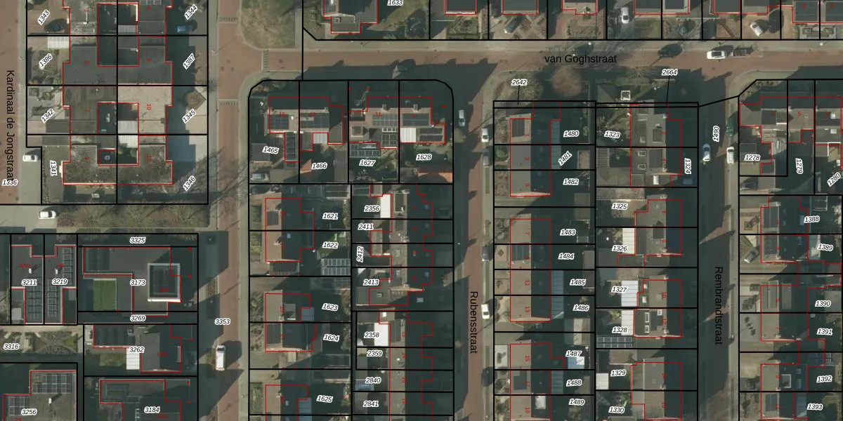 Het perceel waarop Rubensstraat 4 staat heeft een oppervlakte van 202 m². Dit is een middelgroot perceel. De perceeloppervlakte wordt geregistreerd door het Kadaster. Gedetailleerde informatie over de maten van dit perceel kunt u vinden in het rapport Kadastrale kaart met maatvoering van Rubensstraat 4.
