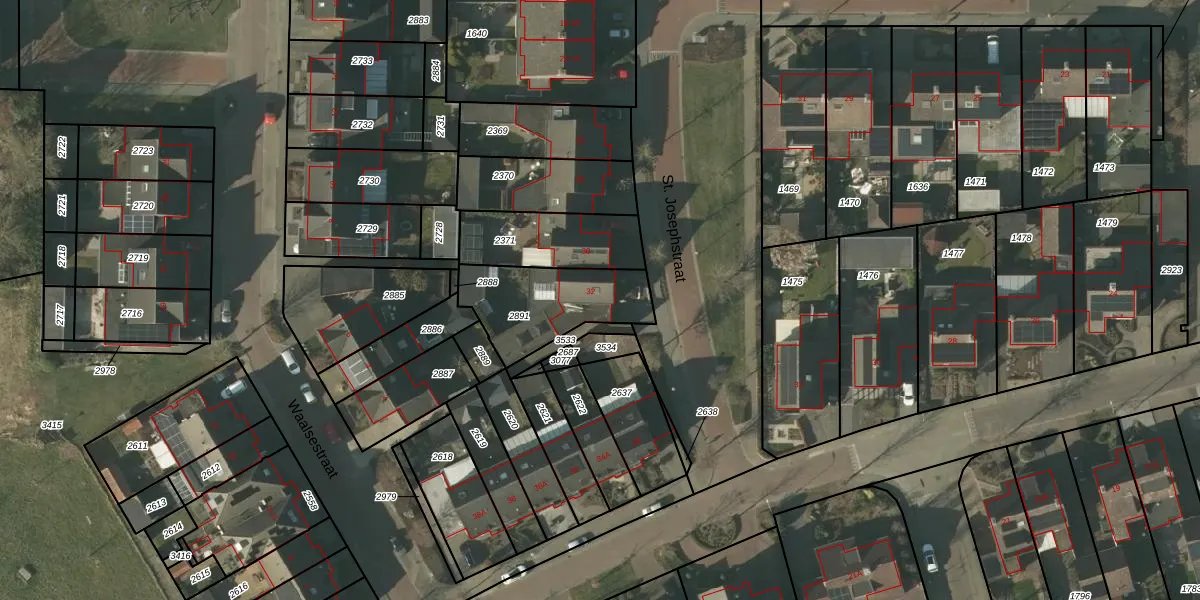 St. Josephstraat 32 is gelegen op kadastraal perceel HDN01H2891. Deze kadastrale aanduiding is uniek en wordt gebruikt door het Kadaster om eigendomsrechten en andere zakelijke rechten vast te leggen. Het perceel maakt onderdeel uit van de kadastrale gemeente Helden.