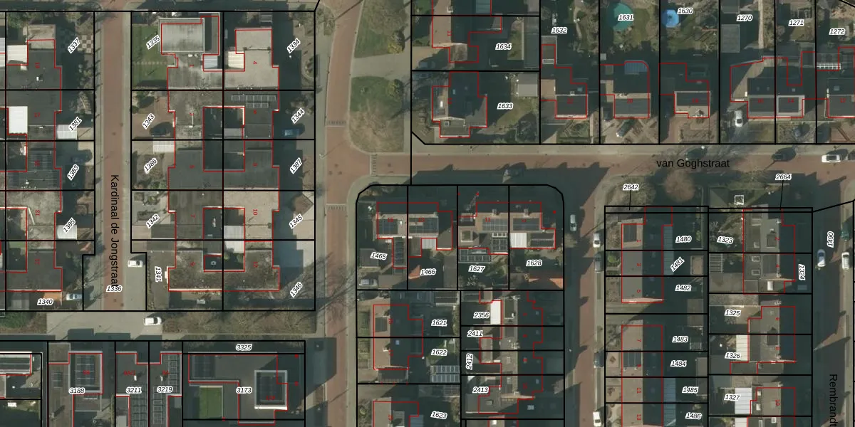 Het perceel waarop van Goghstraat 13 staat heeft een oppervlakte van 287 m². Dit is een middelgroot perceel. De perceeloppervlakte wordt geregistreerd door het Kadaster. Gedetailleerde informatie over de maten van dit perceel kunt u vinden in het rapport Kadastrale kaart met maatvoering van van Goghstraat 13.