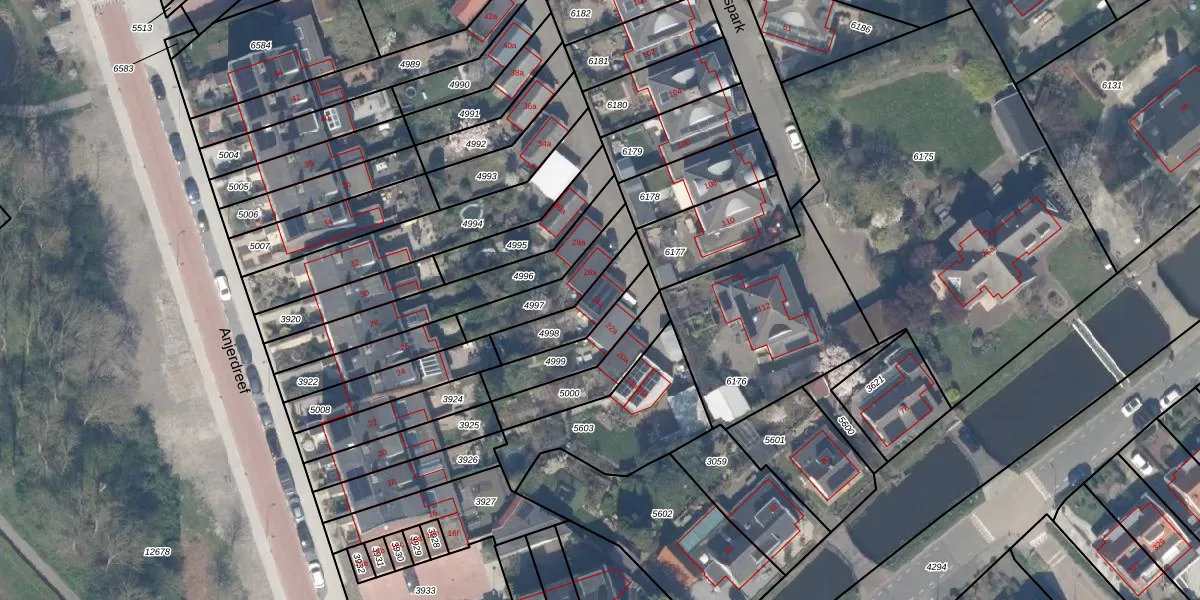 Gebruik de zoekbalk of klik op een perceel voor informatie over de adressen binnen dit perceel.