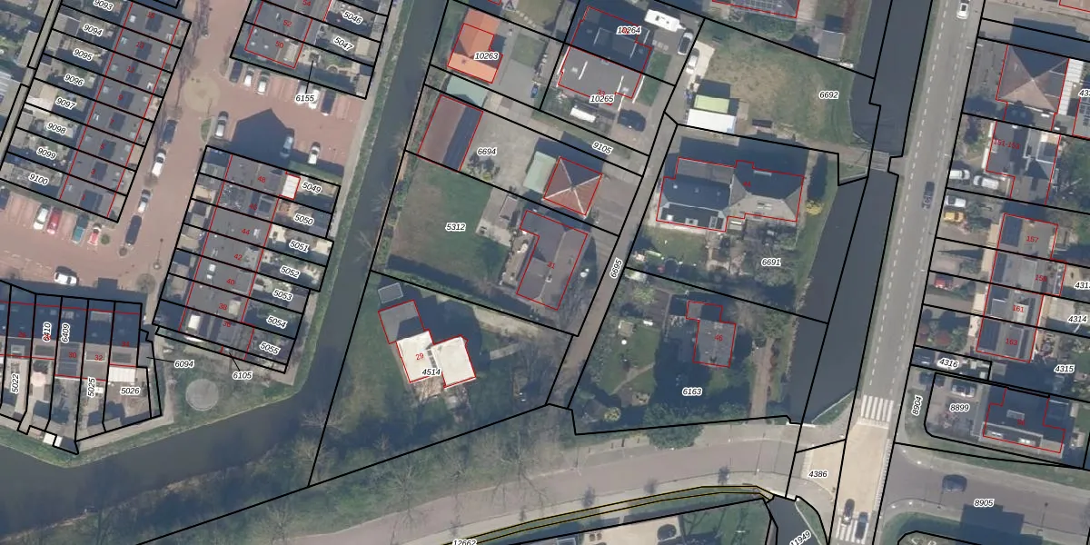 Gebruik de zoekbalk of klik op een perceel voor informatie over de adressen binnen dit perceel.