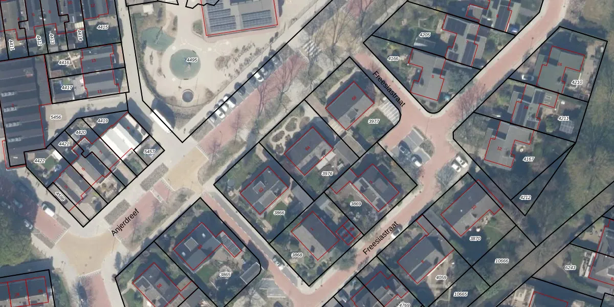 Gebruik de zoekbalk of klik op een perceel voor informatie over de adressen binnen dit perceel.