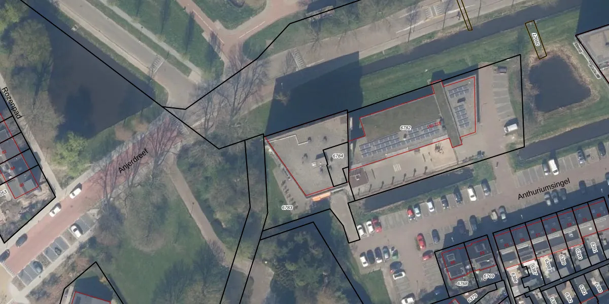 Het perceel waarop Anthuriumsingel 188 staat heeft een oppervlakte van 815 m². Dit is een groot perceel. De perceeloppervlakte wordt geregistreerd door het Kadaster. Gedetailleerde informatie over de maten van dit perceel kunt u vinden in het rapport Kadastrale kaart met maatvoering van Anthuriumsingel 188.