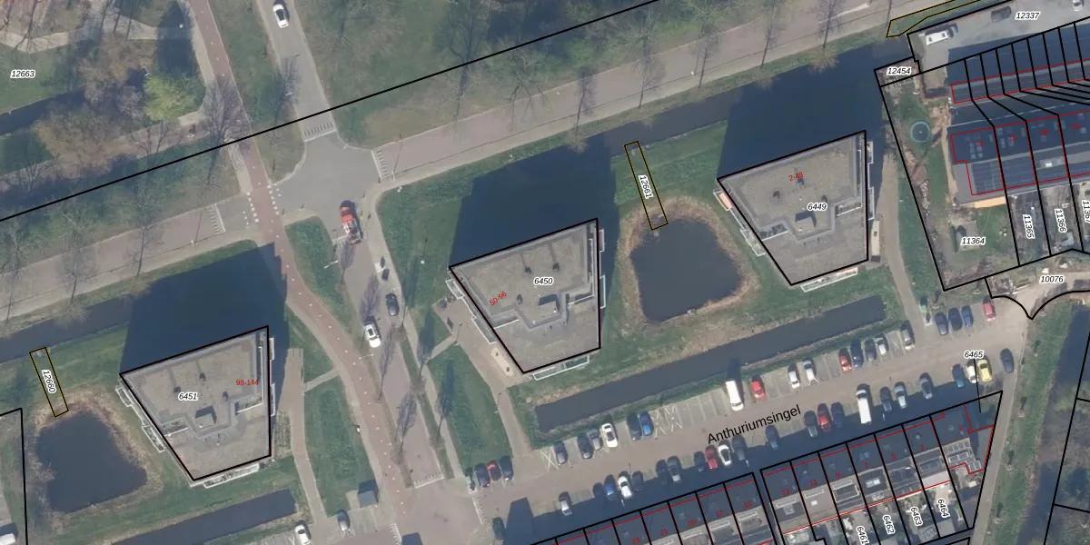 Het perceel waarop Anthuriumsingel 66 staat heeft een oppervlakte van 492 m². Dit is een groot perceel. De perceeloppervlakte wordt geregistreerd door het Kadaster. Gedetailleerde informatie over de maten van dit perceel kunt u vinden in het rapport Kadastrale kaart met maatvoering van Anthuriumsingel 66.